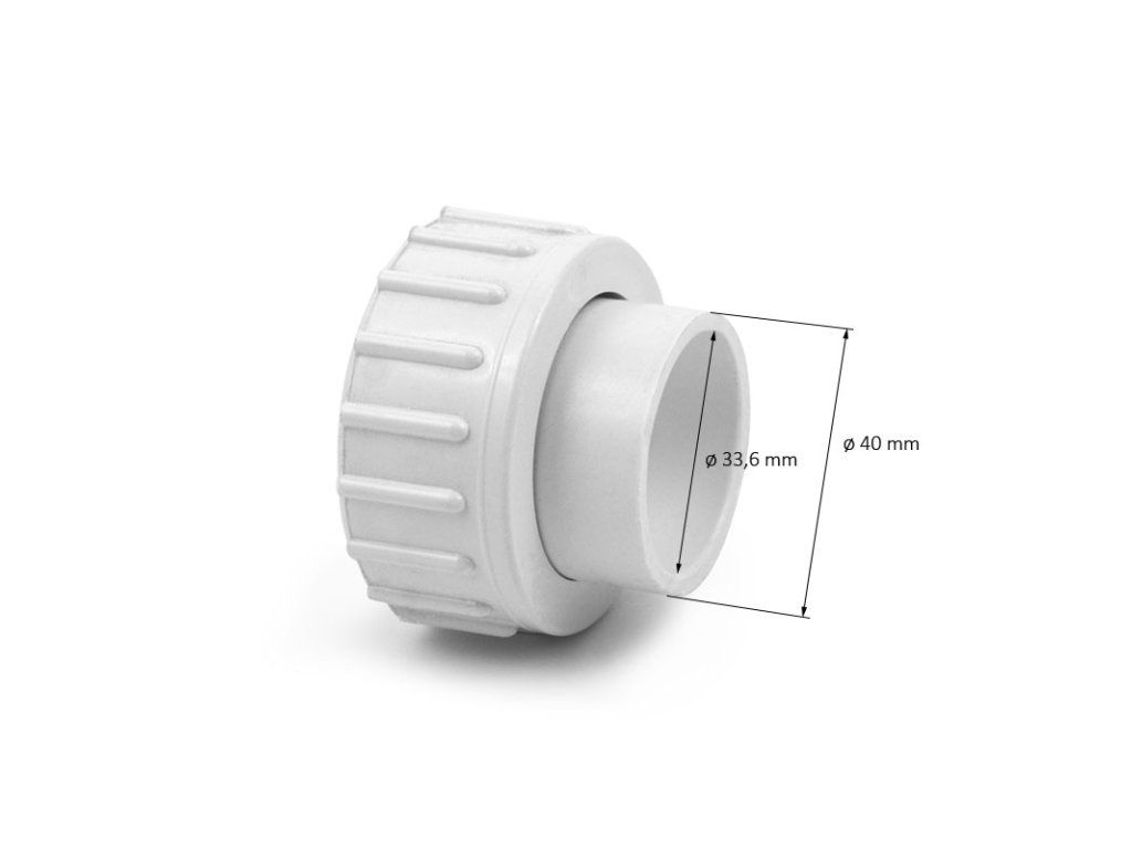 Toto šroubení obsahuje matici, která pasuje na čerpadla se závitem o vnějším průměru 48 mm (tento typ závitu je známý jako 1palcový MBT), a hladký nátrubek pro vlepení 1" trubky. Je vhodné pro použití s menšími čerpadly, jako je například Waterway Tiny Might. O-kroužek je součástí balení.