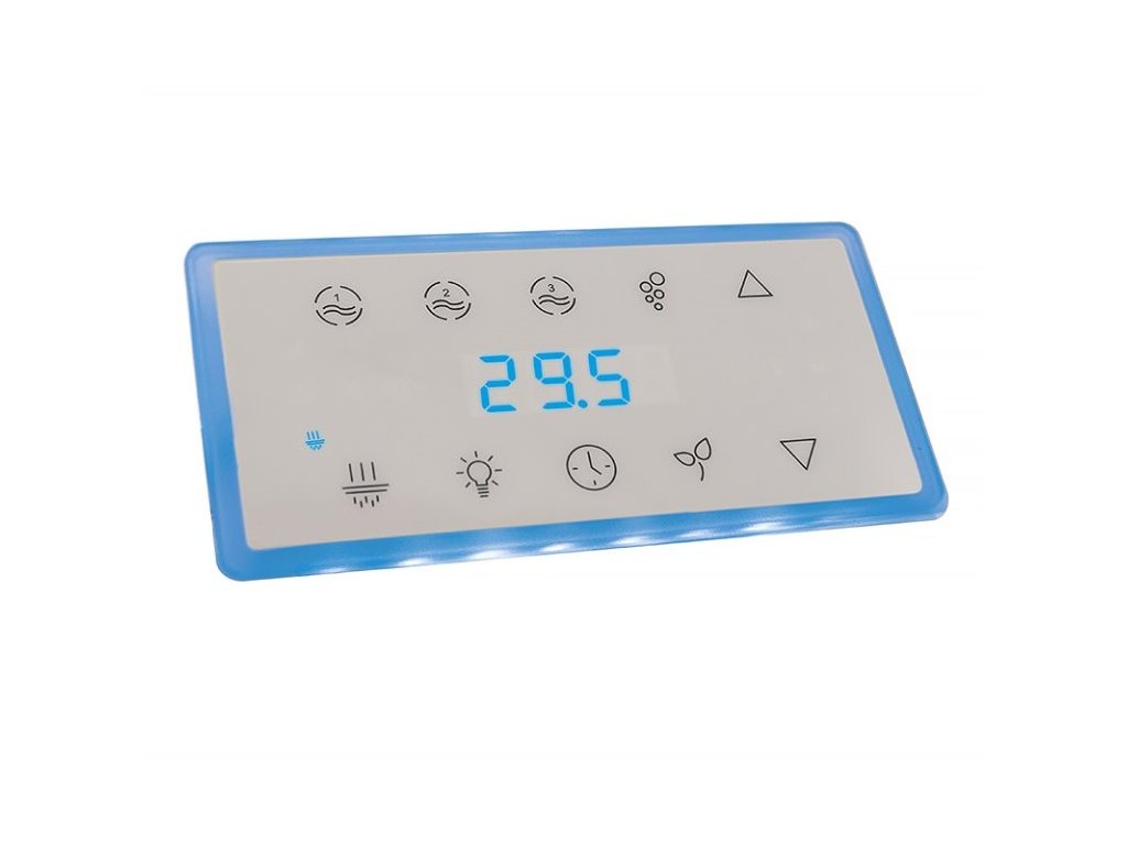| Tlačítka: | Jets 1, Jets 2, Jets 3, Blower, Filter, Light, Clock, Economy, Up, Down |