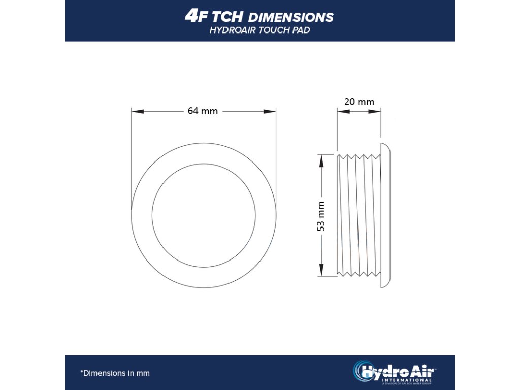 Schalttafel mit einem Durchmesser von 64 mm. Wenn die Funktion eingeschaltet ist, leuchtet die LED-Leuchte über der Taste auf.