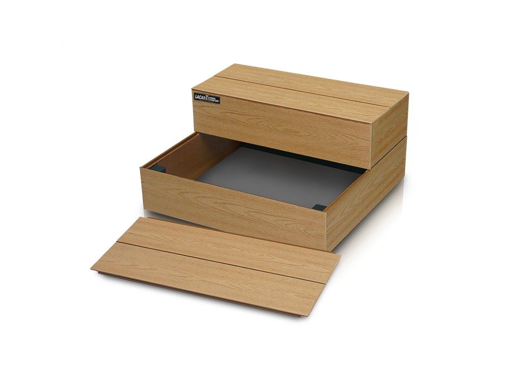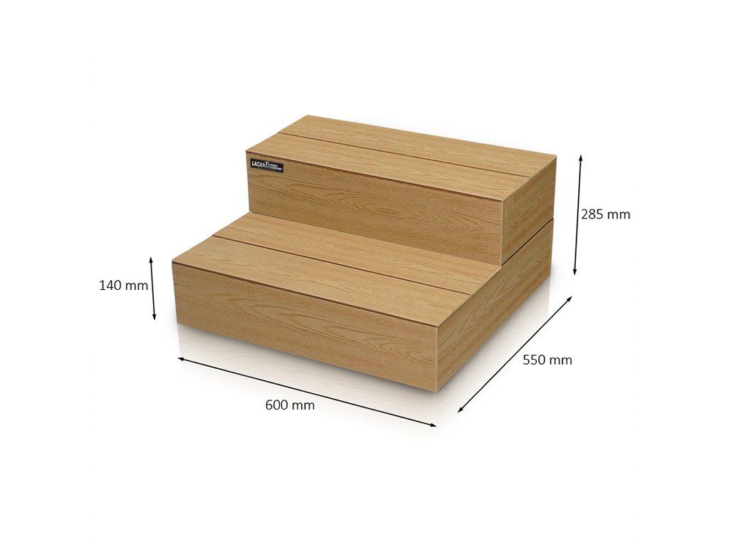 Material Lacan besteht aus einem sehr widerstandsfähigen PVC-Material, das für den Einsatz im Freien konzipiert wurde und völlig resistent gegen Schimmel und klimatische Bedingungen ist. Jede Treppe enthält ein ausziehbares Element, unter dem sich ein Staufach für z.B. Chemikalien, SPA-Zubehör.
