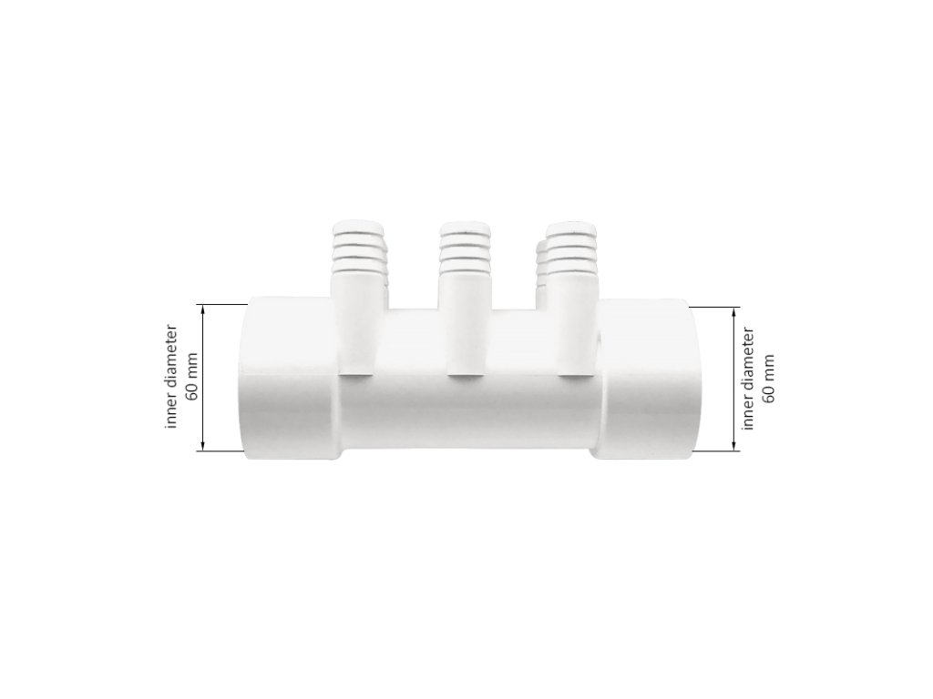 Eingang für Rohr: 1× Ø 60 mm (Innen), die zweite Seite ist blind