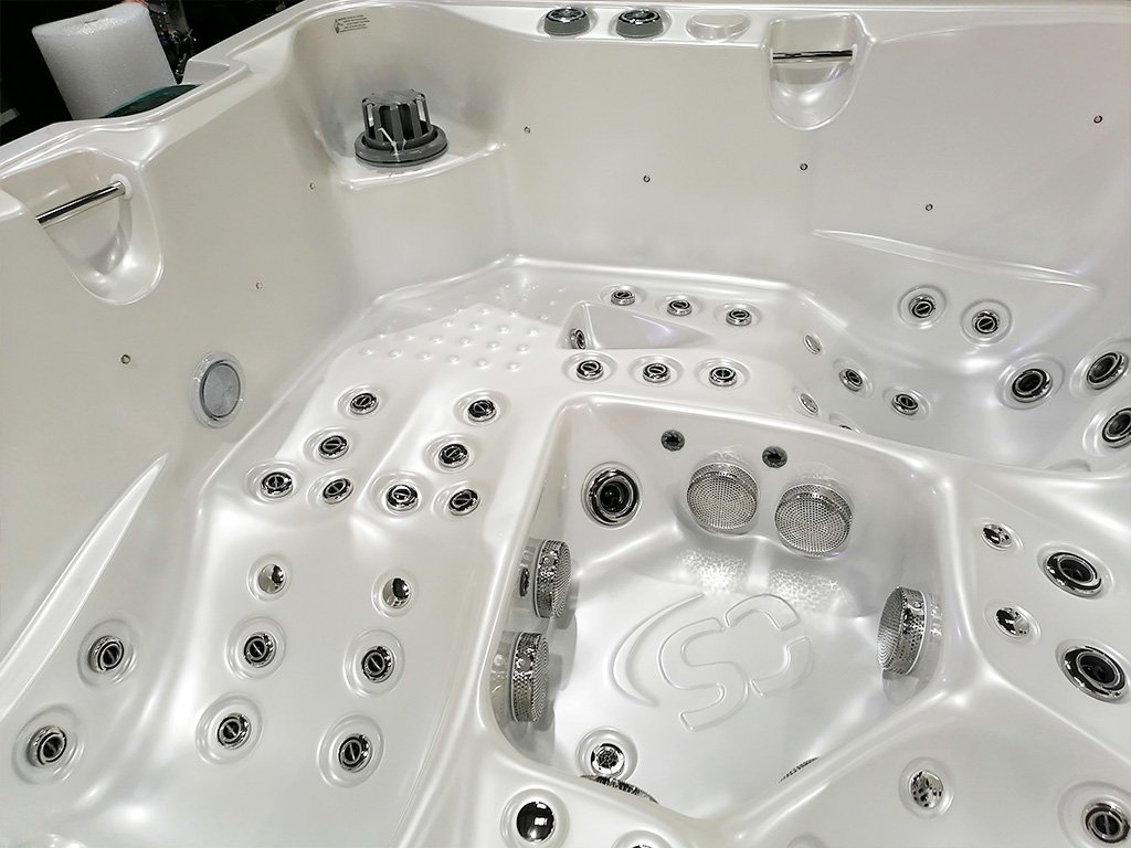 Der Ausstellungs-Whirlpool Marlin Geometric ist ein designorientiertes Modell mit hoher Massageleistung und ausgefeilten Sicherheitsfunktionen. Es handelt sich um eine vollständig neue Wanne aus der Präsentation, voll funktionsfähig und installationsbereit. Es können lediglich kleine kosmetische Mängel wie feine Kratzer vorhanden sein, die keinen Einfluss auf Betrieb oder Lebensdauer haben.