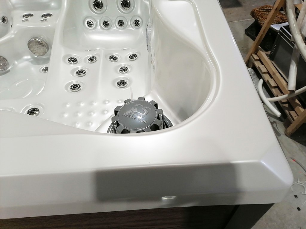Ausstellungs-Whirlpool, vollständig neu, unbenutzt, mit minimalen kosmetischen Mängeln. Verkleidung S01 American Walnut.