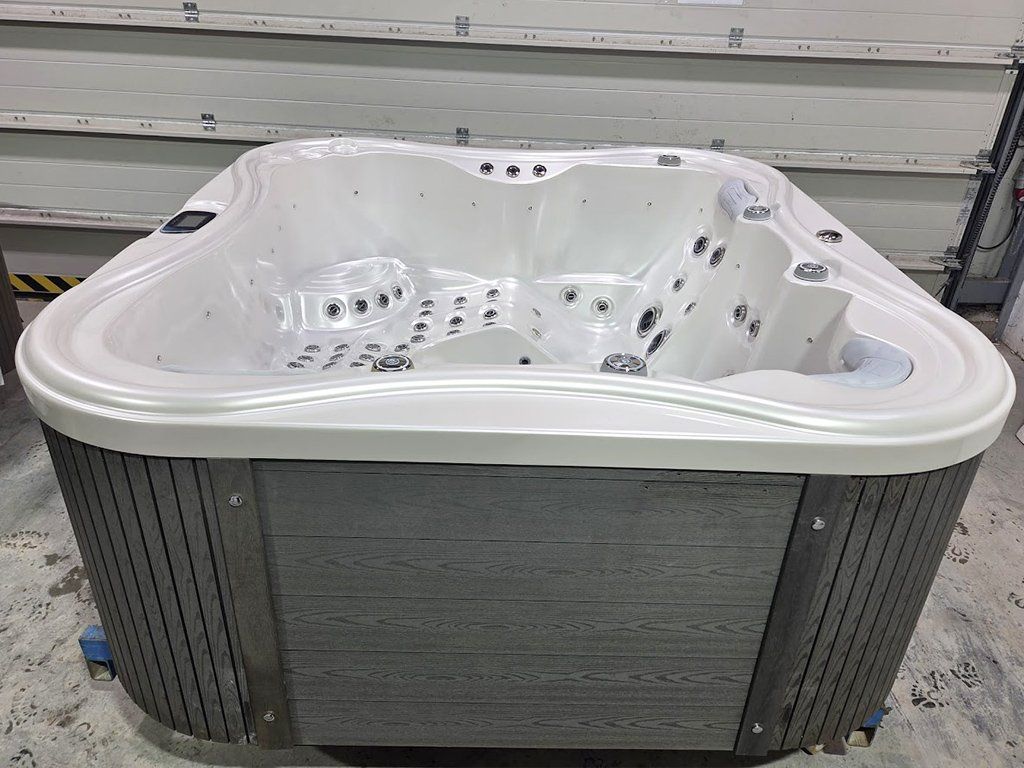 Leistungsstarker Whirlpool mit 2 Liegeplätzen und 2 Sitzplätzen für 4 Personen, Maße 210×197×91 cm, ca. 1.150 l, 87 Ultra Jets. Balboa SpaTouch2 Bedienpanel, 3× Wasserpumpen 1,85 kW, Umwälzpumpe 0,2 kW, Gebläse 700 W, CANZONE Desinfektionssystem (neue Generation). Neuwertig, kosmetische Mängel, voll funktionsfähig.