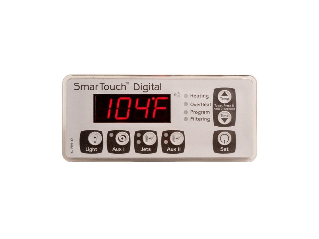 | Tlačítka: | Up (Temp), Down (Time), Light, Jets, Set, Aux 1, Aux 2 |