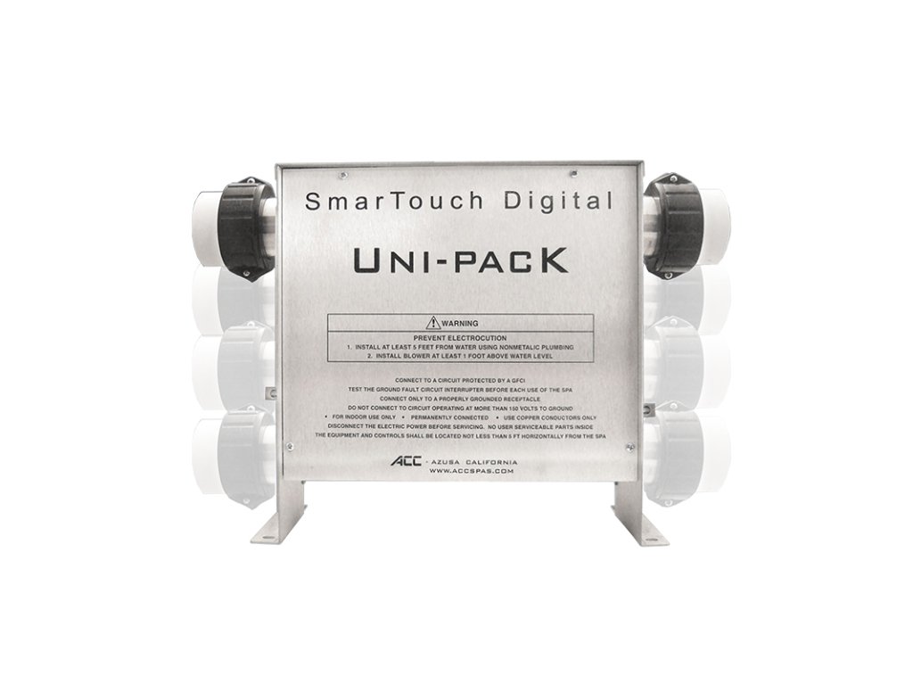 UNIPACK Flow Thru is a universal spare spa control system. Heating body is installed on a back side of a cabinet. It is also removable and it can be up to 1m from a control unit. Longer connecting cable is available.
