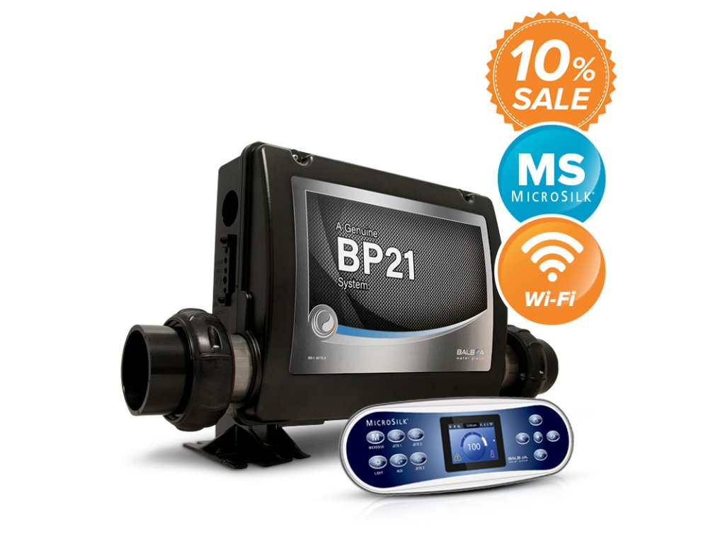 This high-performance control unit BP21MS2B is one of the systems to which it is possible to connect a Wi-Fi module and use the Balboa Worldwide App (bwa™) to control the hot tub using a phone or tablet running on the Android or Apple iOS operating system. New generic MicroSilk® system with up to 2 pumps, optional compressor and circulation pump.