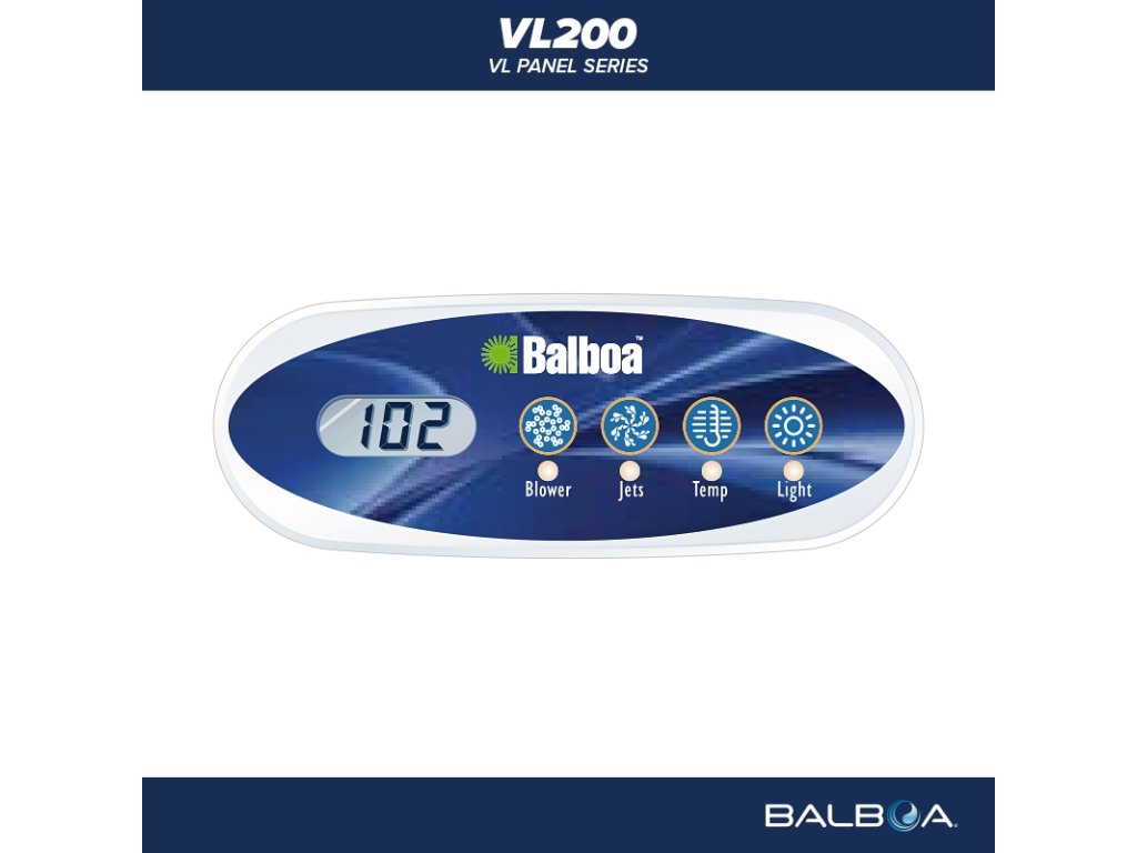 | Tlačítka: | Blower, Jets, Temp, Light |