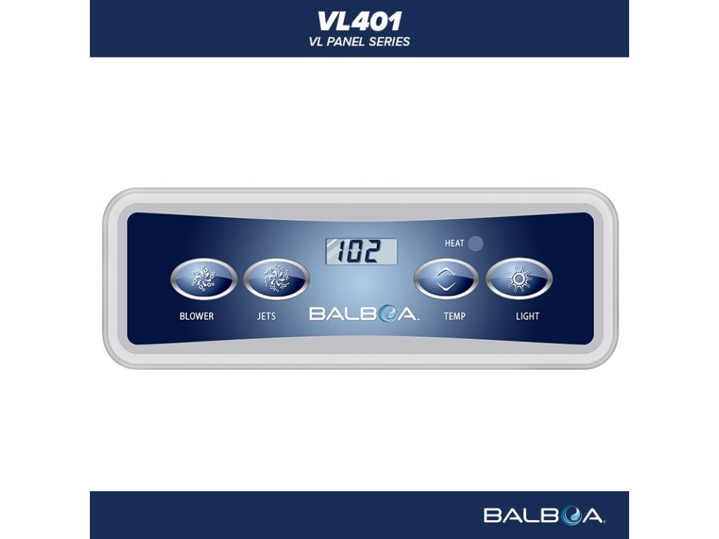| Tlačítka: | Blower, Jets, Temp, Light |
