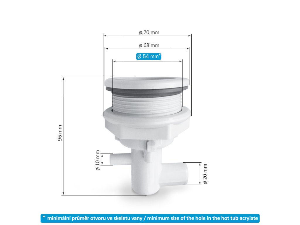 Required hole in the hot tub acrylate to fit the jet body: min. Ø 54 mm