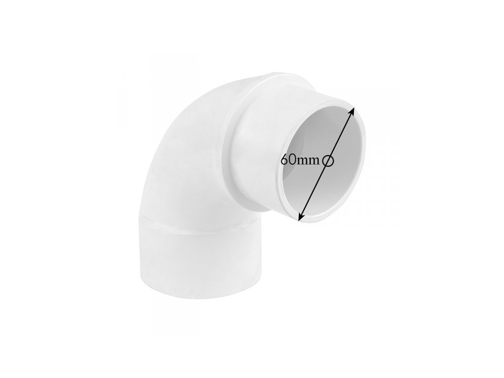 Reducer 90° has inner diameter 60 mm on one side and on the other side there is outer diameter 60 mm. Before pasting it is neccesary to clean properly all ends. Apply thing layer of glue and use pressure to hold the parts together. Allow 5 minutes without any action. Then proceed with other pasting.