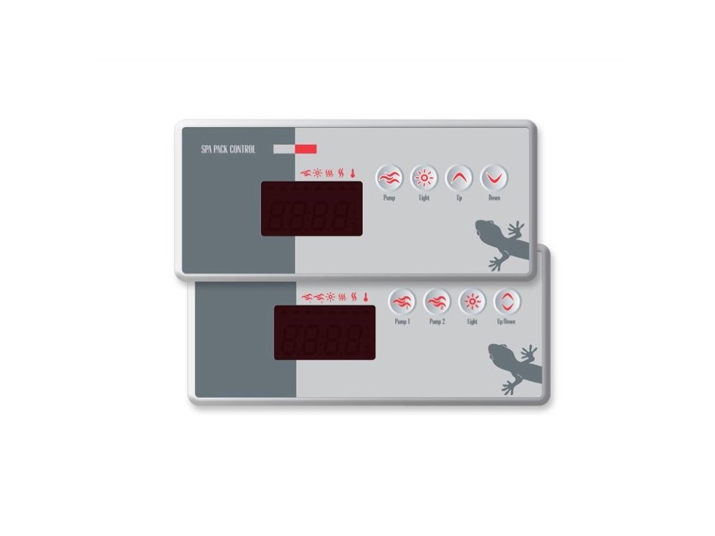 Control panel TSC-19, or also K-19 by the brand GECKO which offers four buttons is delivered with two overlaps Their layout is either Pump 1/ Light/ Up/ Down or Pump 1/ Pump 2/ Light/ Up, Down.