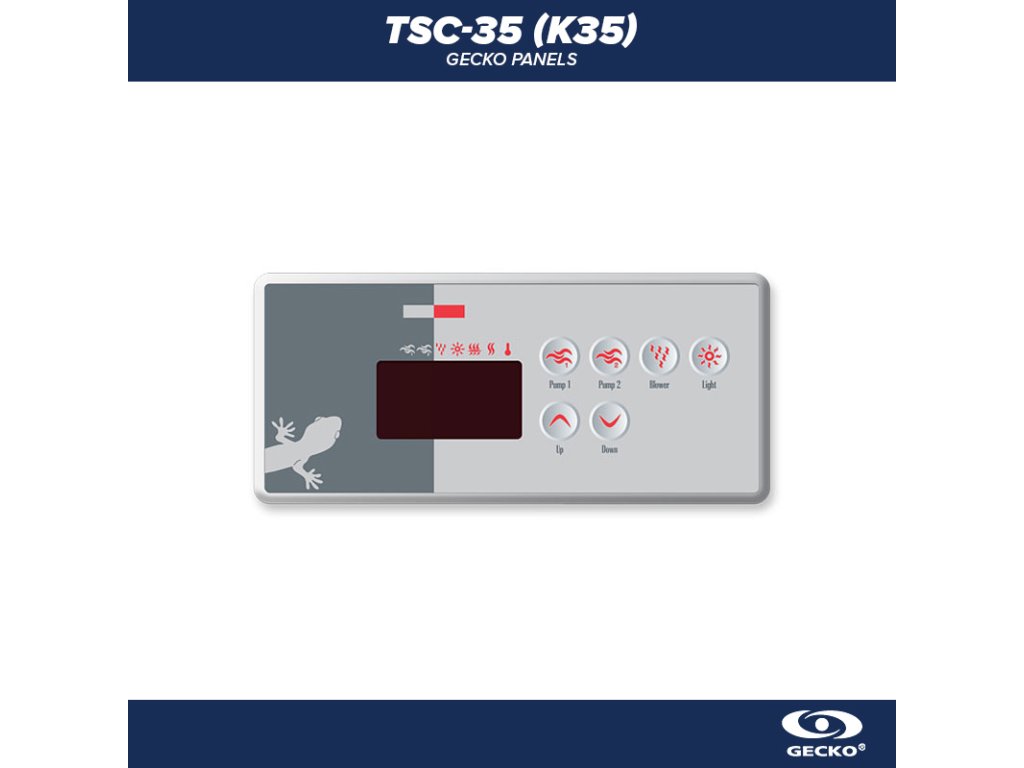 Control panel TSC-35, or also K-35 by the brand GECKO which offers six buttons is delivered with the following button layout: Pump 1/ Pump 2/ Blower/ Light/ Up/ Down.