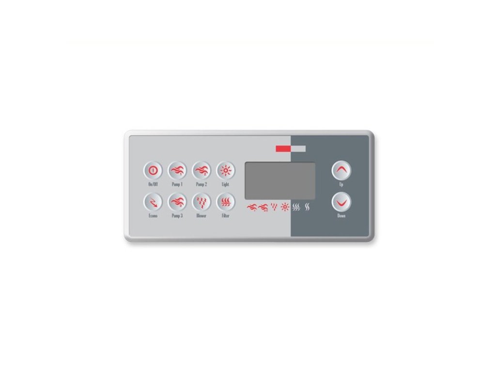 | Tlačítka: | On/Off, Pump 1, Pump 2, Light, Eco, Pump 3, Blower, Filter, Up, Down |