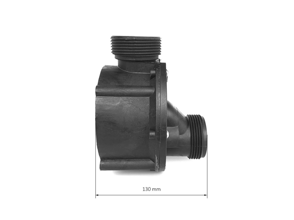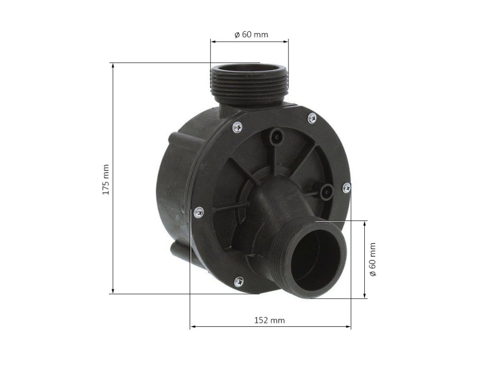 The diameter of the inlet and outlet connection is 60 mm external thread for flange connection (not included in the package)