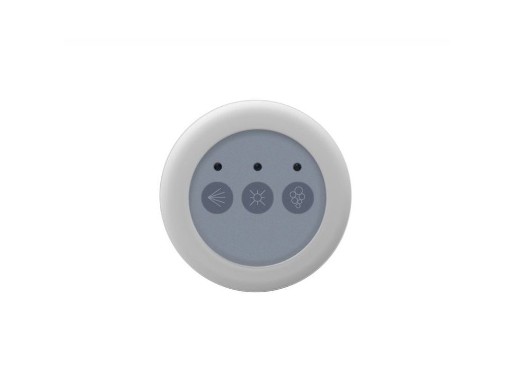 Control panel of diameter 64 mm for pump, compressor and light control. If a function is on, LED light is lit above a button.