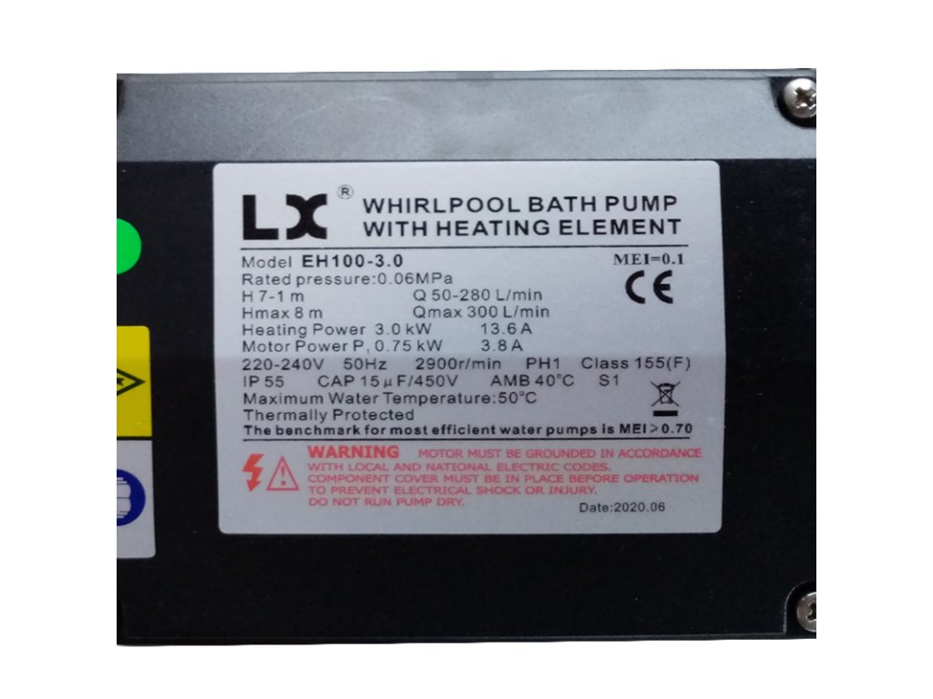 - Pump LX EH100 is a combination of pump 0,75kW and a heater 3,0kW.