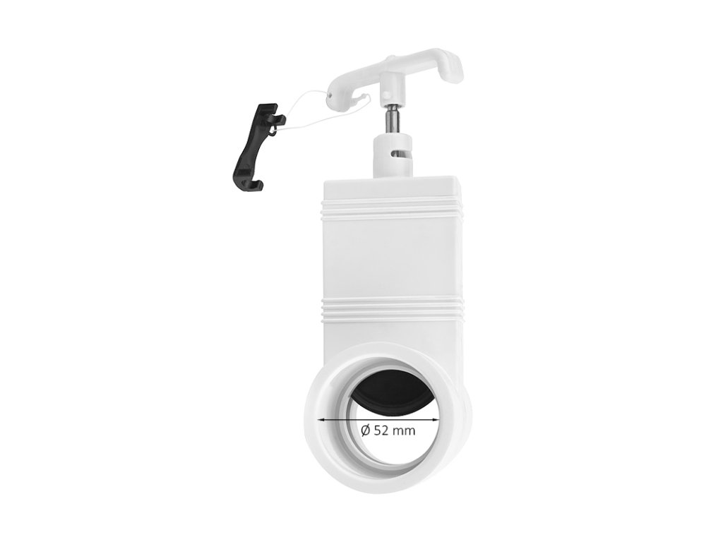 Slide valve made from PVC with inner diameter 52 mm on both sides. Fitting by sealing.