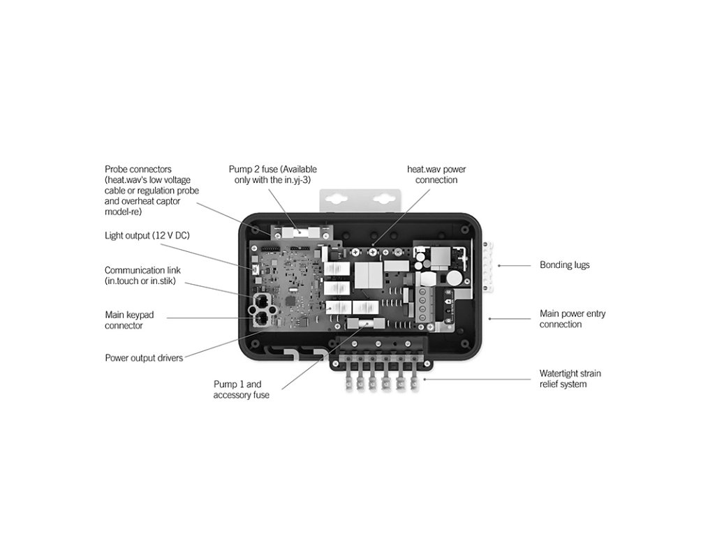 Control unit of the serie Aeware whirpools is ideal for smaller spas thanks to its compact size without any negative effect on functionality of other control units of the serie Y. It supports 3 configurable ?connectors?, panel, heating and lighting (2– speed engine uses 2 connectors).