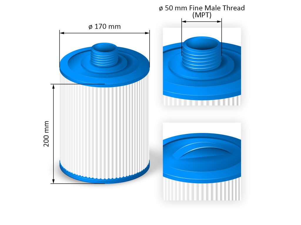 Speciální kartušová filtrační vložka vhodná pro různé typy domácích vířivých van a SWIM SPA.