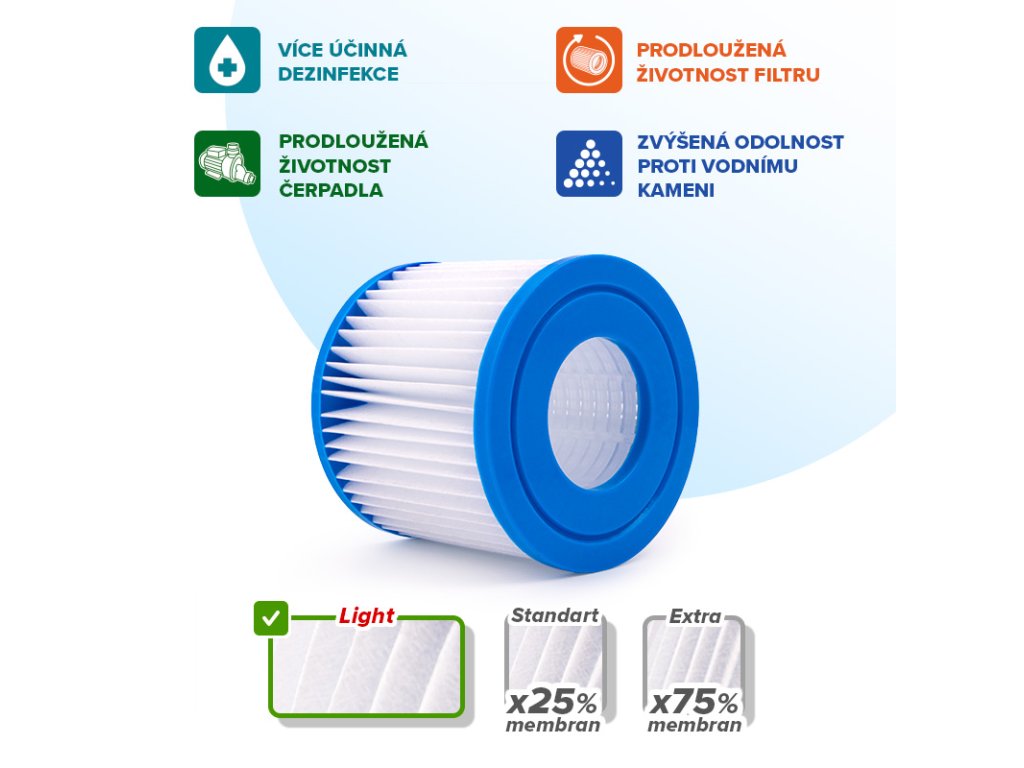 Speciální kartušová filtrační vložka vhodná pro různé typy domácích vířivých van a SWIM SPA.