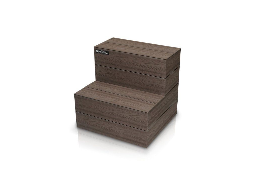 Schody z materiálového provedení Lacan Floor je vyráběno ze stejného materiálu jako je obkladový prvek u nejvyšších paketů opláštění na vířivých vanách a swim spa. Nabízíme 3 druhy materiálů (American Walnut S01, Old Wood S02, Pacific Brown S03) stejně jako opláštění na vířivých vanách.