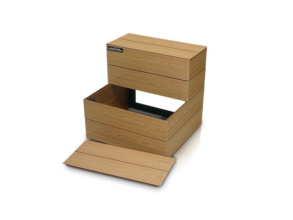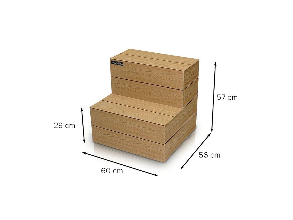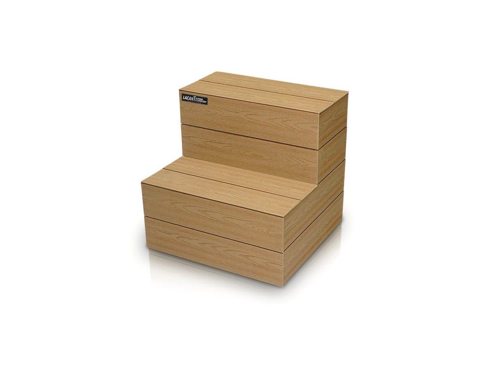Materiál Lacan je vyroben z vysoce odolného materiálu PWC, který je určen do venkovního prostředí a je zcela rezistentní proti plísním a klimatickým podmínkám. Součástí každého schodiště je vyndavací prvek, pod kterým je umístěn úložný prostor například pro chemii, či příslušenství ke SPA.