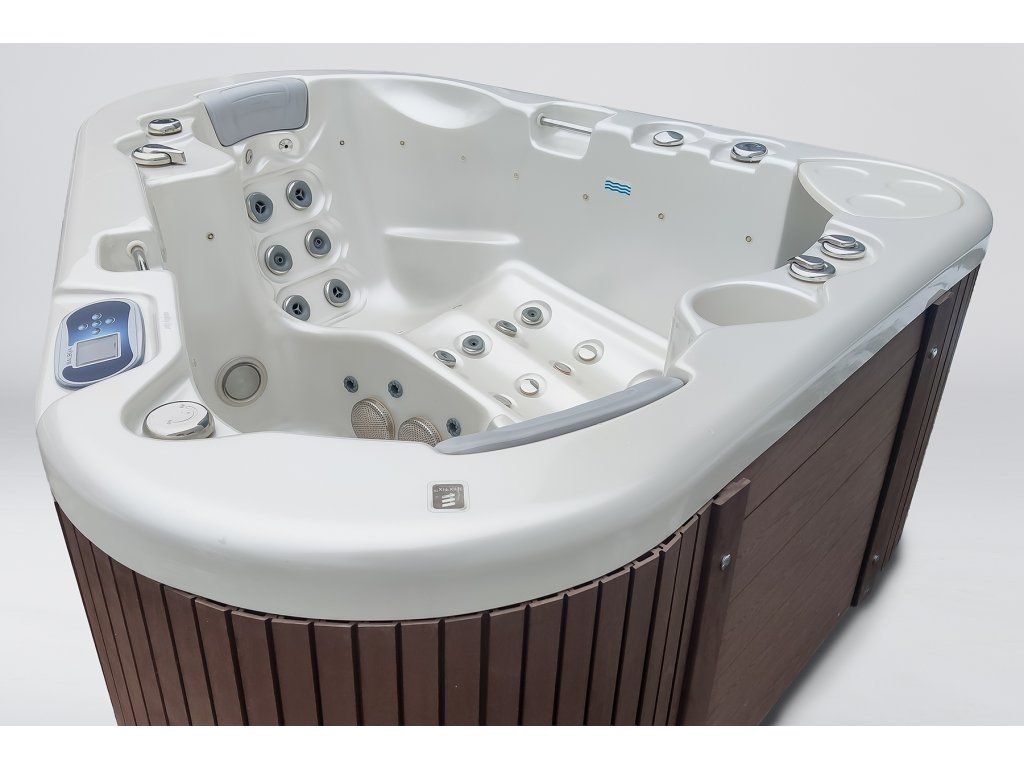 Kompaktný luxus s dušou nového stroja – Manta s výbavou Platinum. Manta patrí medzi najobľúbenejšie voľby pre páry alebo do priestorovo obmedzených záhrad a terás. Tento model však ponúka viac než bežný outlet – do tejto vane sme nainštalovali kompletnú novú sadu trysiek Platinum, nový blower CG AIR a špičkovú dezinfekčnú technológiu CANZONE.