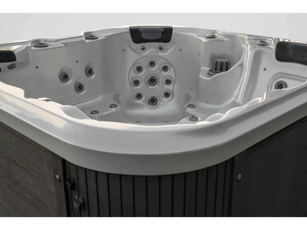 Nemo spája kompaktné rozmery 200×200×92 cm s pocitom veľkého priestoru. Jedno ležadlo a tri sedadlá zabezpečia relax pre celú rodinu a nerezové trysky masírujú presne tam, kde to cítite najviac.