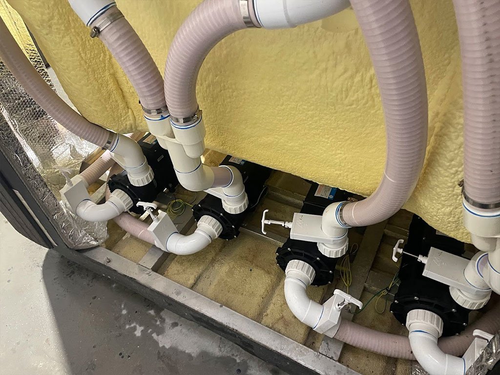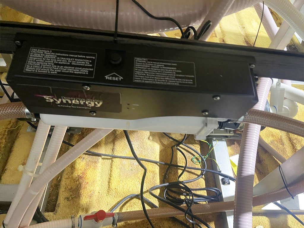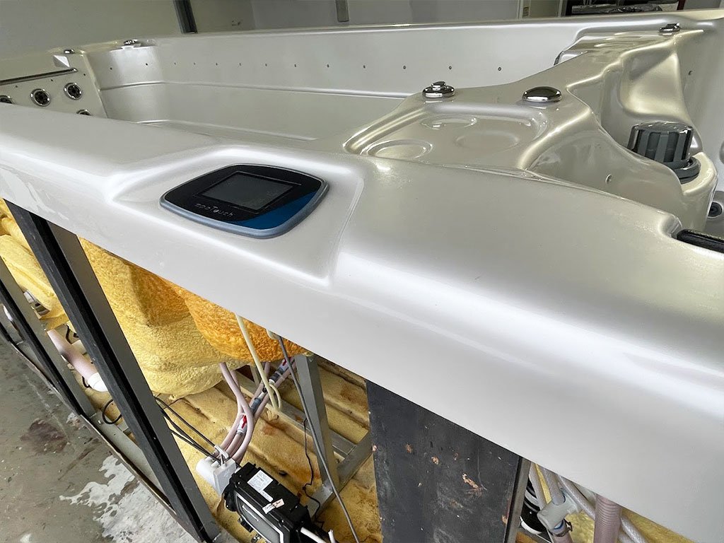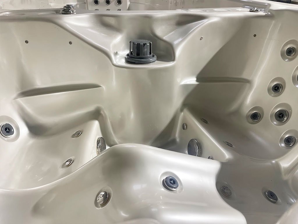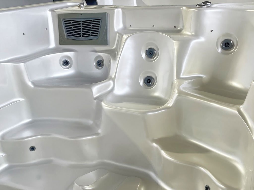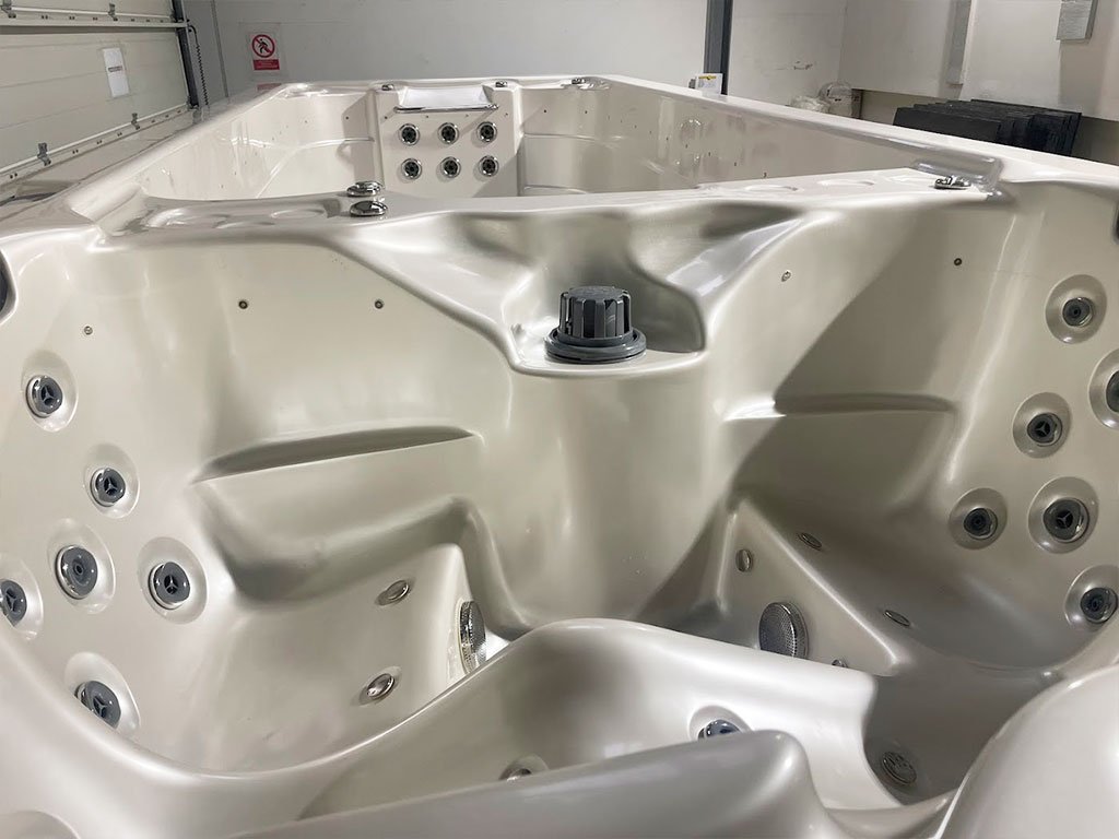 Velkorysé dvouzónové Swim Spa se samostatnou zónou pro plavání a pro relax. Dva dotykové panely SpaTouch2, samostatné řídicí jednotky Balboa SPS21X1 a BP21P4BC pro zónu swim, ohřev 3 kW + pomocný 3 kW, 4 hydromasážní čerpadla ve vířivé části, cirkulace 0.2 kW a cirkulace swim 0.75 kW, blower 700 W, dezinfekční systém CANZONE 2025 v obou zónách. Akryl Perla, opláštění S02 Old Wood.