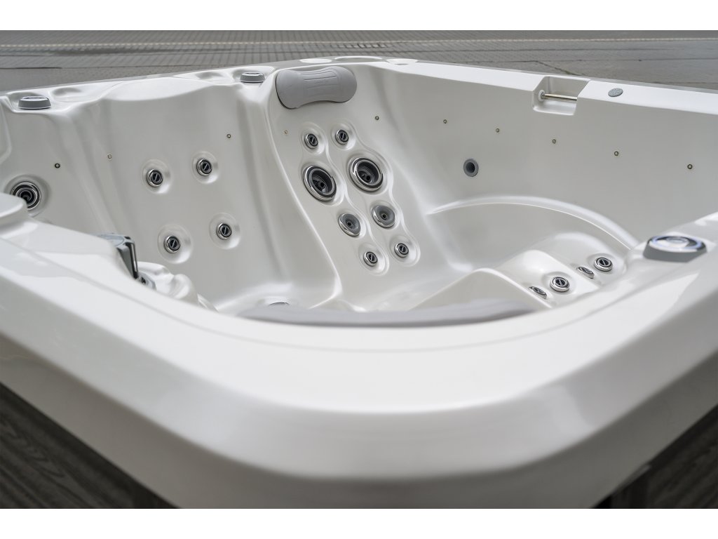 Luxusní, prostorná čtvercová vířivka pro 5 osob (1 lehátko + 4 sedátka), která spojuje špičkový masážní výkon se současným designem. Díky 78 nerezovým masážním tryskám, hlubokému lehátku a ergonomicky tvarovaným sedům je Moorin New plnohodnotné domácí wellness centrum. Komplexní izolace a kvalitní opláštění zajišťují nízké provozní náklady i při celoročním venkovním používání.