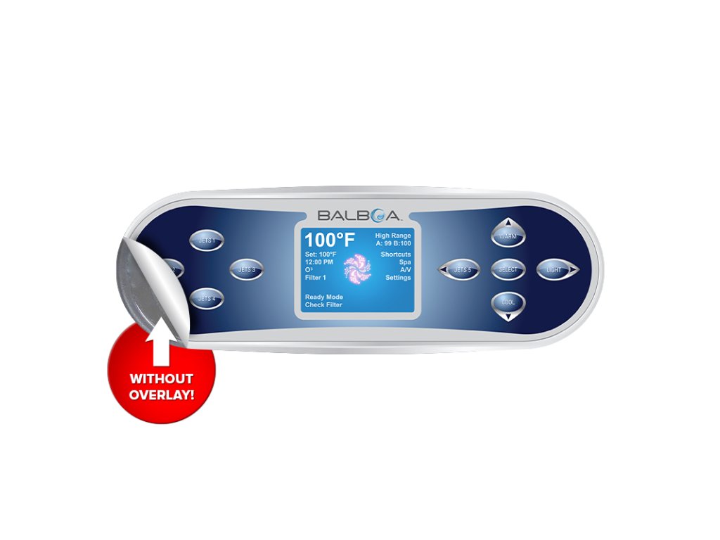 | Tlačítka: | Jets 1, Jets 2, Jets 3, Jets 4, Jets 5, Warm, Cool, Select, Light |